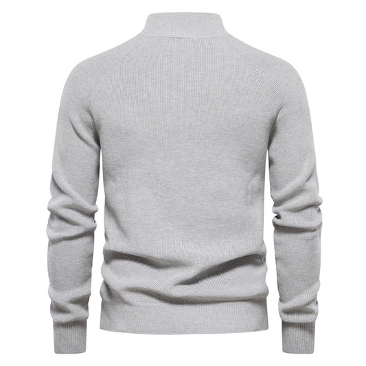 Men's Stand Collar Solid Color Knitted Pullover Sweater